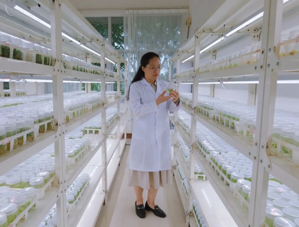 2022年,广东农垦布局南药产业,谢黎黎联合高校专家团队开展南药品种选育及种苗繁育,成功建立五指毛桃、益智等16种南药组培快繁技术体系,年产能达到1000万株。同时,她参与试验推广“橡胶+南药”“光伏+南药”等立体种植模式,将南药种植“请上山”,让6万多亩胶园实现“林上产胶、林下生金”,为胶农创造了额外收益。