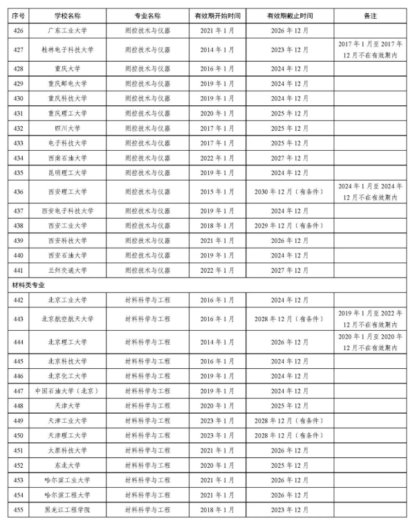 2024年底,全国共有322所普通高等学校2441个专业通过了工程教育认证,涉及机械、仪器等24个工科专业类。现将历年来通过认证的专业名单予以通告。