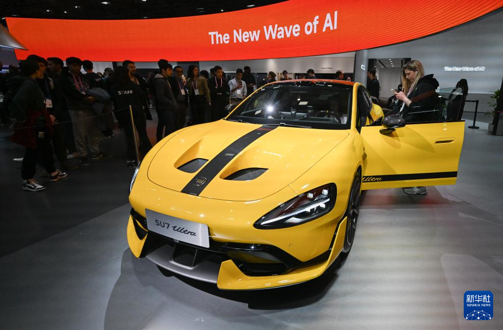 3月5日,在西班牙巴塞罗那举行的2026年世界移动通信大会上,人们参观一款小米汽车。新华社记者 程敏 摄