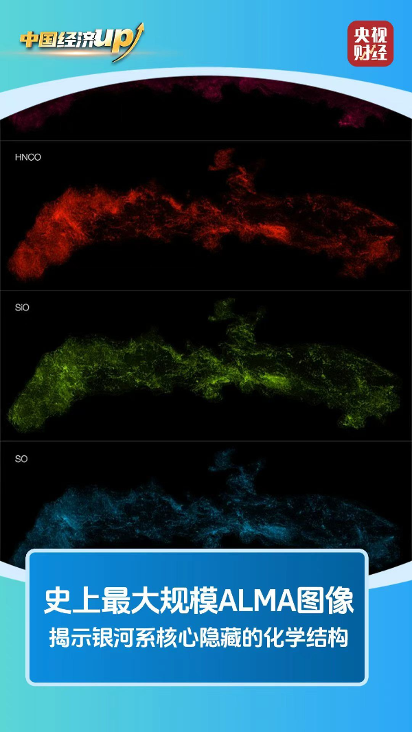 记者25日从中国科学院上海天文台获悉,我国科研人员参与的国际研究团队依托阿塔卡马大型毫米/亚毫米波阵列望远镜(ALMA),获得了最大规模的ALMA图像,揭示了银河系核心隐藏的化学结构。这一高质量数据集将使天文学家能够深入研究银河系中心的位于超大质量黑洞附近最极端环境下的恒星生命历程。