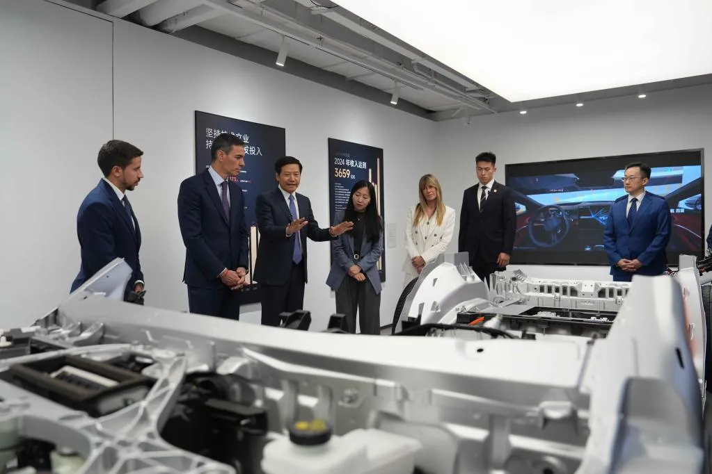 4月13日,西班牙首相桑切斯在北京的小米科技园参观。新华社记者 马晓冬 摄