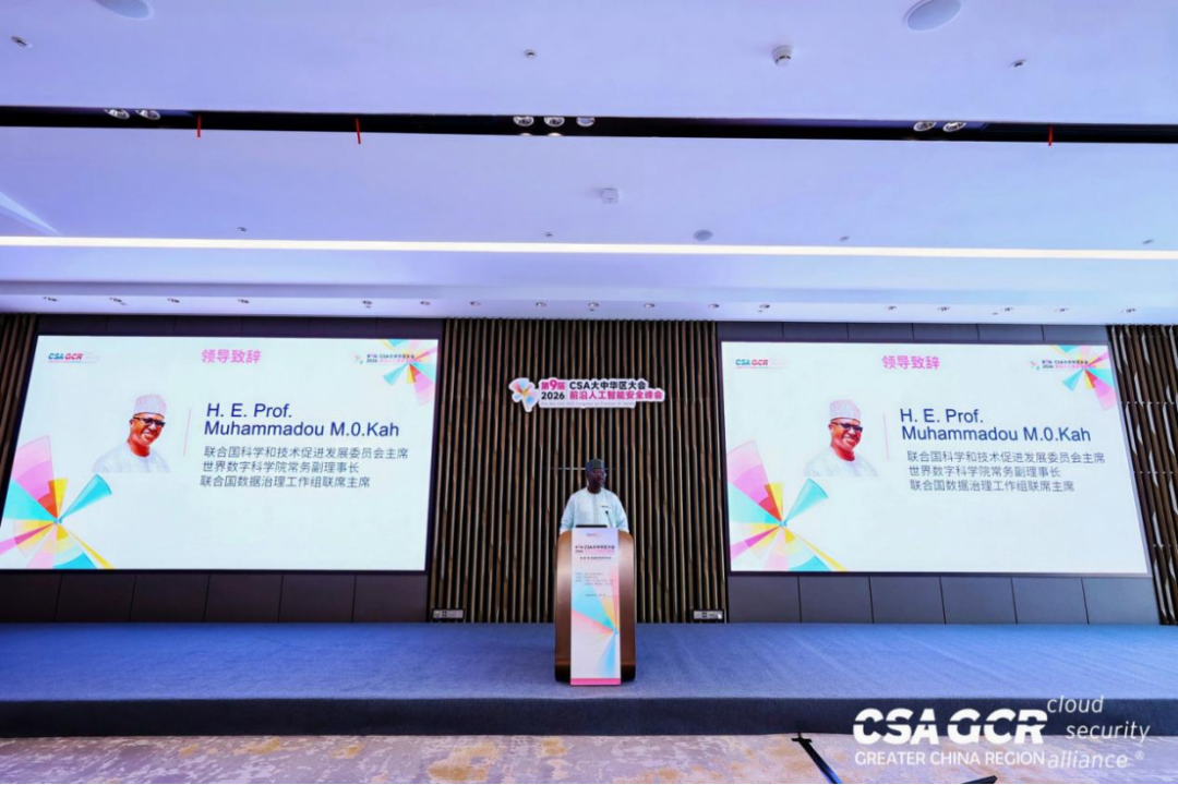 在第九届CSA大中华区大会暨前沿人工智能安全峰会上,联合国科学和技术促进发展委员会(UN CSTD)主席、世界数字科学院(WDTA)常务副理事长、联合国数据治理工作组联席主席Muhammadou M.O. Kah(穆科德)发表致辞讲话,不仅回应了当下AI发展的核心挑战,更将这场大会从行业交流,推向了全球治理与人类共同命运的高度。