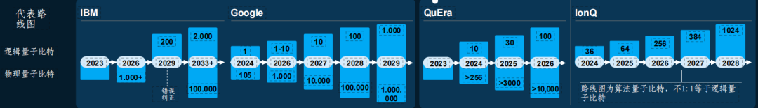 / / 全球量子创新取得重大进展,量子技术将成为颠覆性创新生态系统中的关键动力 (一)量子计算领域主要参与者正在重塑量子计算生态系统,研究重点转向量子比特稳定性 当前,全球量子计算领域主要参与者正在达到突破性的里程碑,朝着可扩展的逻辑量子比特发展。在超导电路方面,谷歌公司发布Willow量子芯片,利用105个物理量子比特构成1个逻辑量子比特,在表面码码距为7时实现了99.86%的保真度;亚马逊云科技(AWS)发布Ocelot处理器,利用5个“猫量子比特”和4个辅助量子比特在表面码码距为5时实现了98.35%的保真度;IBM公司在27量子比特芯片Falcon上制备出4个逻辑“魔法态”(非Clifford资源状态),保真度高于单个物理量子比特的保真度。在拓扑量子比特方面,微软公司制备出全球首个采用新型拓扑核心架构的量子芯片Majorana 1。在中性原子量子比特方面,QuEra公司通过使用280个物理量子比特的可重构中性原子阵列制备出2个高保真度逻辑量子比特;Pasqal公司开发出量子经典混合算法,可监测分子两个势能面交叉的临界点。在离子阱方面,Quantinuum公司使用Steane码(一种量子纠错码)对1个逻辑量子比特进行容错传送,传输过程中在四个点上进行纠错,实现了97.5%的逻辑过程保真度。同时,领先量子计算公司已制定并开始执行可扩展通用量子计算路线图(详见图1)。 图1 主要领先量子计算企业发布的路线图