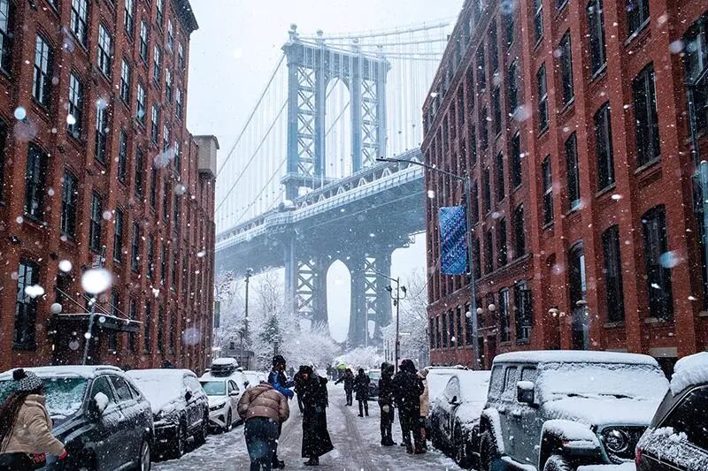 人们走在美国纽约曼哈顿桥前(2025年12月14日摄) 新华社 / 美联