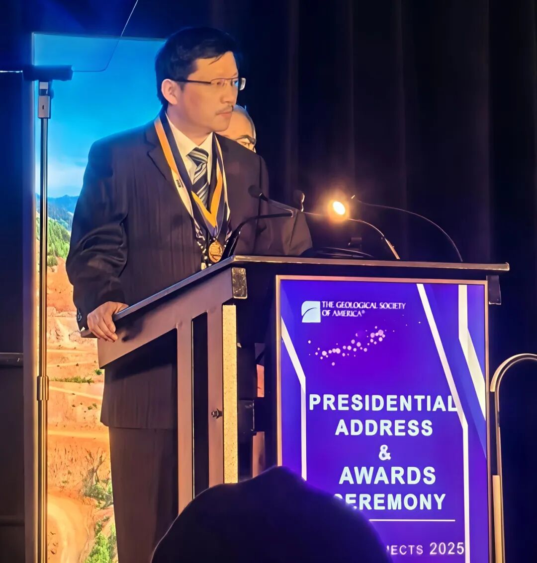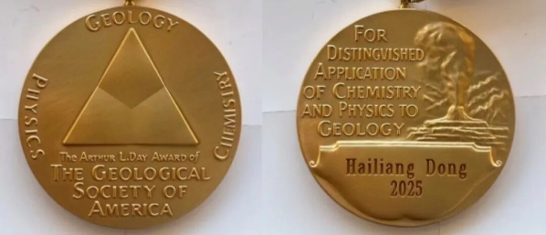 美国地质学会(Geological Society of America, GSA,成立于1888年)将2025年度Arthur L. Day Medal奖章授予中国地质大学(北京)董海良教授,以表彰其在生物地球化学和地质微生物学领域作出的开创性与颠覆性贡献。董海良教授是首位获得此项殊荣的亚洲学者。在2025年10月18-22日于美国圣安东尼奥举办的美国地质学会年会期间,董海良教授应邀发表了获奖感言,并作主题报告。