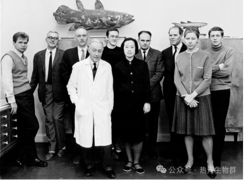 1967年,张弥曼在瑞典自然历史博物馆。前排左,史天秀;前排中,张弥曼