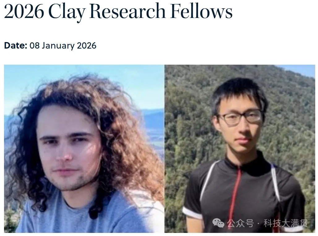 当地时间1月8日,在数学界享有盛誉的克雷研究学者( Clay Research Fellows)2026年度入选者正式揭晓。本次仅有2位杰出的年轻学者收获了该荣誉,他们分别是:来自苏黎世联邦理工学院理论研究所的青年研究员Oliver Edtmair(2024年博士毕业),他将自2026年7月1日起获任为克雷研究学者,为期三年;另一位则是来自加州大学伯克利分校的在读博士生任秋宇(Qiuyu Ren,今年将博士毕业),他将自2026年7月1日起获任为克雷研究学者,为期五年。