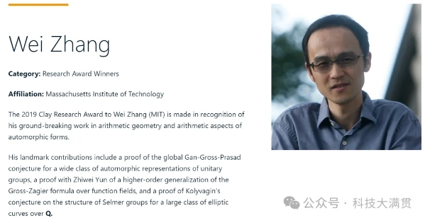 克雷数学研究所会颁发克雷研究奖和克雷研究学者等多个数学领域的重要荣誉,这些荣誉在数学领域也是广受认可的。其中克雷研究学者旨在授予研究质量卓越且有望成为数学领袖的候选人,此前已有数位出身自国内的年轻学者曾收获过该荣誉,他们分别是袁新意、余越、李泱和庄梓铨。这四位目前也成为了各自领域的佼佼者;也可以看出,克雷数学研究所在选人上,眼光还是很独到的。而含金量更高的克雷研究奖(Clay Research Awards)则主要奖励全球最具天赋的数学家的杰出成就,目前具有国内教育背景的获奖人仅有一位,就是北大“黄金一代”的张伟。