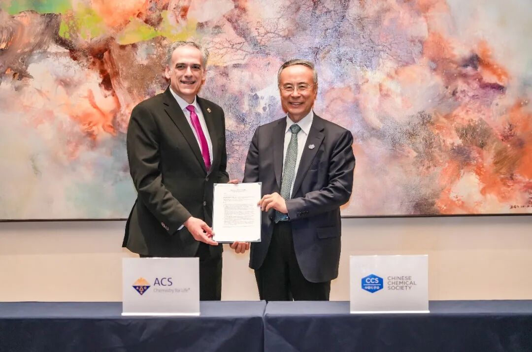 2026年4月11日上午,在中国化学会第35届学术年会期间,中国化学会理事长万立骏在重庆会见了美国化学会主席Rigoberto Hernandez、出版部总裁James Milne一行。双方围绕期刊出版、联合组织学术会议、人才培养等重点议题开展了交流研讨,并完成友好合作备忘录续签。