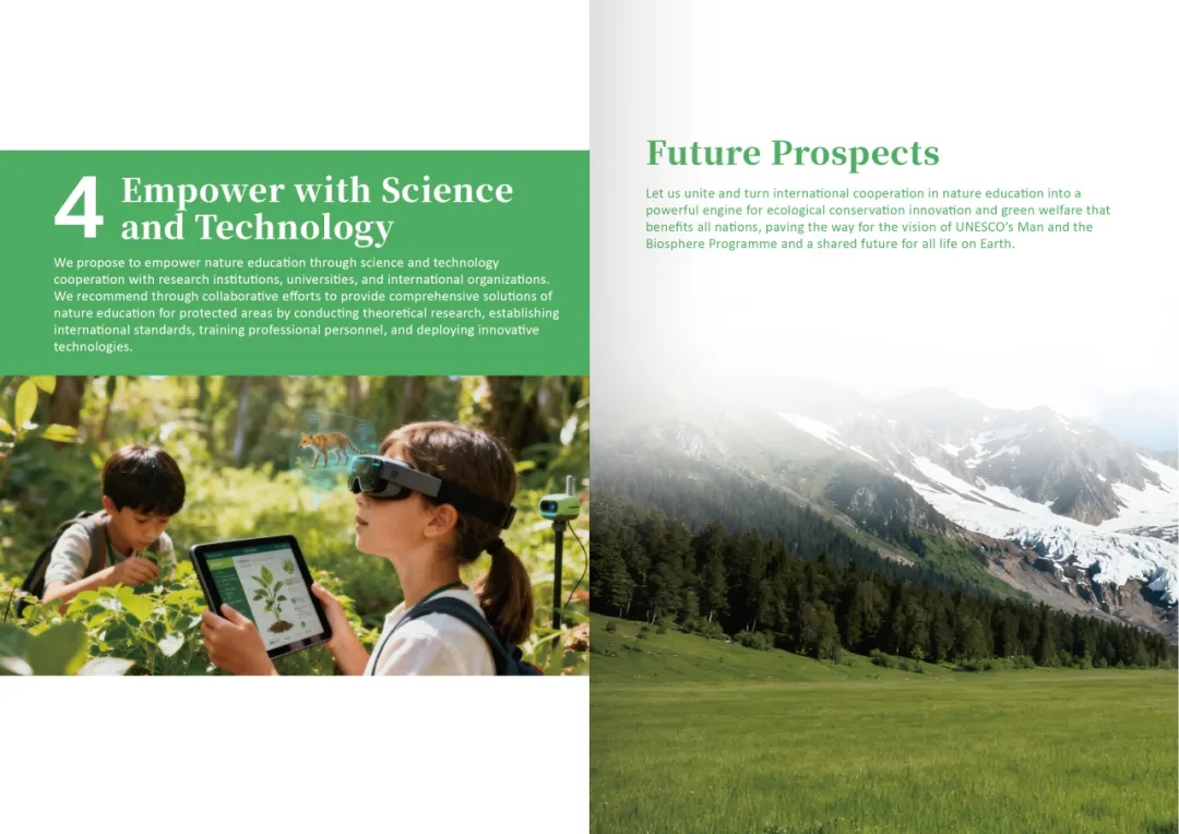 该倡议旨在推动自然教育国际实践分享与合作交流,呼吁将自然教育纳入全球生物圈保护区等保护地的战略行动计划及管理评估体系,总结推广富有本国特色的自然教育经验和做法,推动科技赋能为保护地提供前沿系统的自然教育方案,将自然教育国际合作转化为生态保护的创新动力,助力实现联合国教科文组织人与生物圈计划愿景,为构建地球生命共同体作出更大贡献。