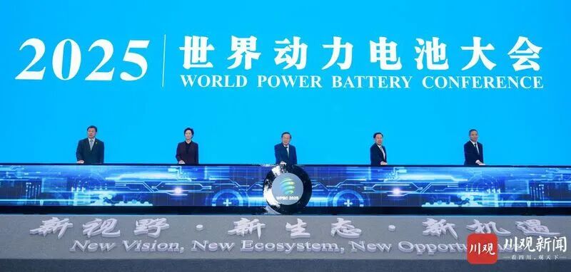 当日,万钢、王晓晖、施小琳、辛国斌、束为共同按下启动装置,2025世界动力电池大会开幕。