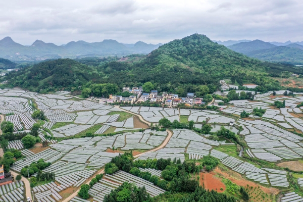 这是2021年4月25日拍摄的广西桂林市全州县才湾镇毛竹山村(无人机照片)。新华社记者 曹祎铭 摄